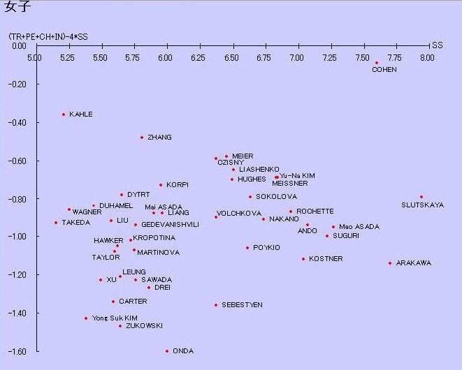 次がアメリカのサーシャコーエン、さらに荒川静香、浅田真央、村主章枝と続きます。